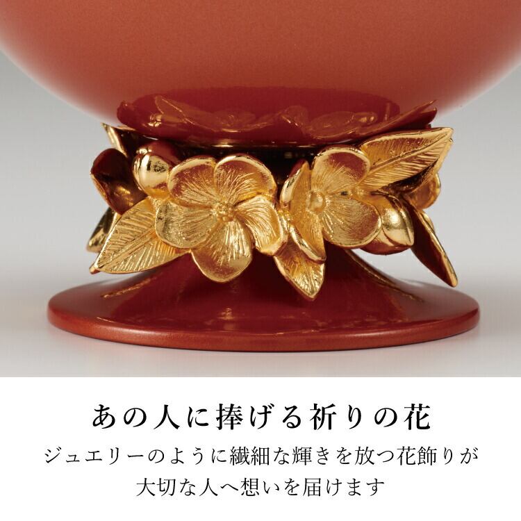 おしゃれなモダン仏具です。伝統工芸「高岡銅器」の日本製5点仏具セット。かわいい花飾りは枯れない仏花にもなり、モダン仏壇に落ち着きと品格をもたらします。