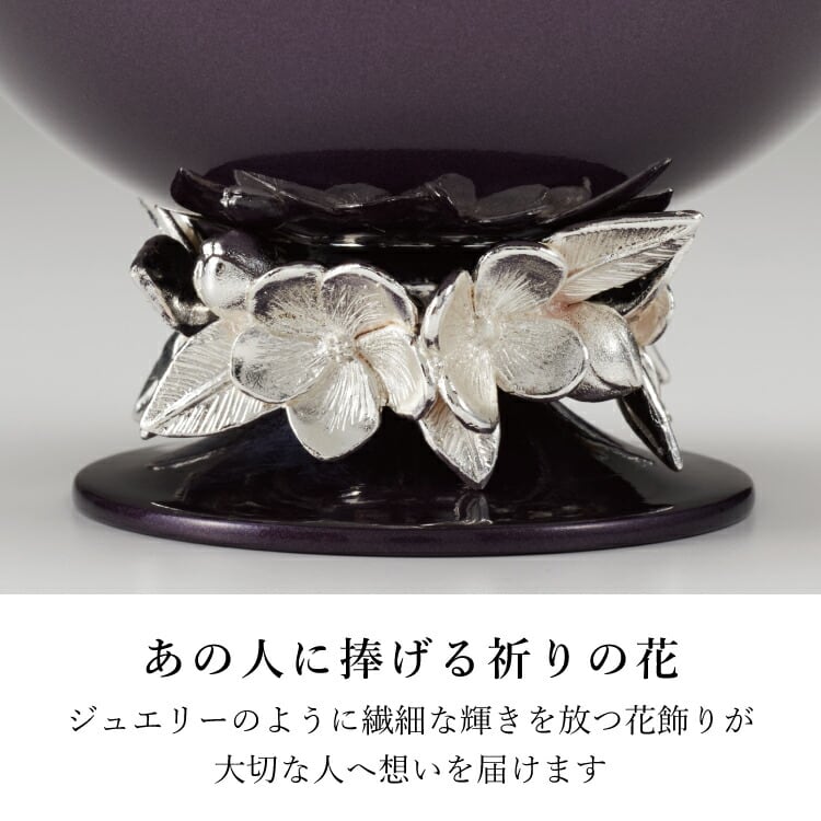 おしゃれなモダン仏具です。伝統工芸「高岡銅器」の日本製5点仏具セット。かわいい花飾りは枯れない仏花にもなり、モダン仏壇に落ち着きと品格をもたらします。
