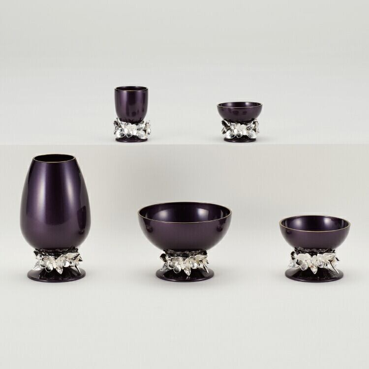 ■サイズ:花立:直径6.1cm 高さ10cm香炉:直径8cm 高さ5.4cm火立:直径6cm 高さ4.4cm茶湯器:直径3.1cm 高さ4.8cm仏飯器:直径4.2cm 高さ3cm