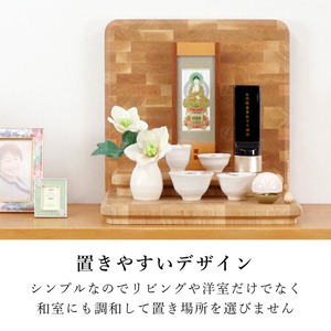 おしゃれなオープンタイプのミニ仏壇。天然木ホワイトオークの温かみが感じられます。小さいサイズでシンプルなデザインだから置き場所を選びません。
