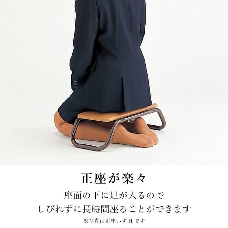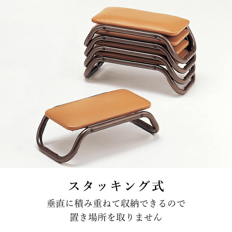 正座用の椅子です。座面の下に足を入れるので、長時間座っていられます。軽量なアルミ製なので持ち運び簡単。垂直に積み重ねて収納できるスタッキング式。