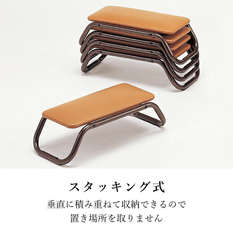 正座用の椅子です。座面の下に足を入れるので、長時間座っていられます。軽量なアルミ製なので持ち運び簡単。垂直に積み重ねて収納できるスタッキング式。