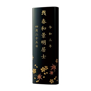 越前塗のモダン位牌。ふるさとの風景を描いた蒔絵がおしゃれで高級感を漂わせます。夫婦位牌の名入れができるのでコンパクトな手元供養にも最適。文字入れ代別途。