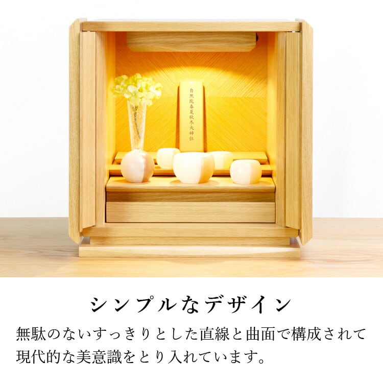 おしゃれなモダン位牌です。すっきりとしたシンプルで直線的なデザイン。コンパクトで夫婦位牌の名入れもできるので小さい仏壇や手元供養にもおすすめです。