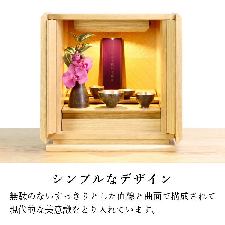 おしゃれなモダン位牌です。すっきりとしたシンプルで直線的なデザイン。コンパクトで夫婦位牌の名入れもできるので小さい仏壇や手元供養にもおすすめです。
