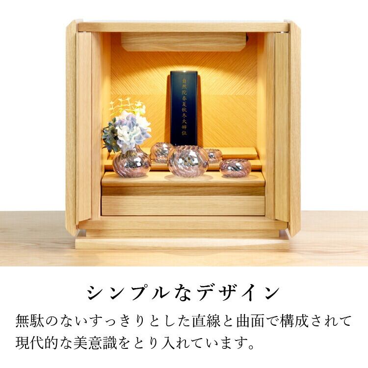 おしゃれなモダン位牌です。すっきりとしたシンプルで直線的なデザイン。コンパクトで夫婦位牌の名入れもできるので小さい仏壇や手元供養にもおすすめです。