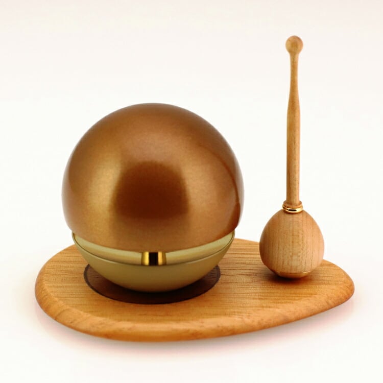 たまゆらりん・りん棒・りん台の3点セットです。丸くてかわいいおりんを鳴らすとユラユラ揺れて透き通った音色を奏でます。専用のりん棒とりん台のセットです。