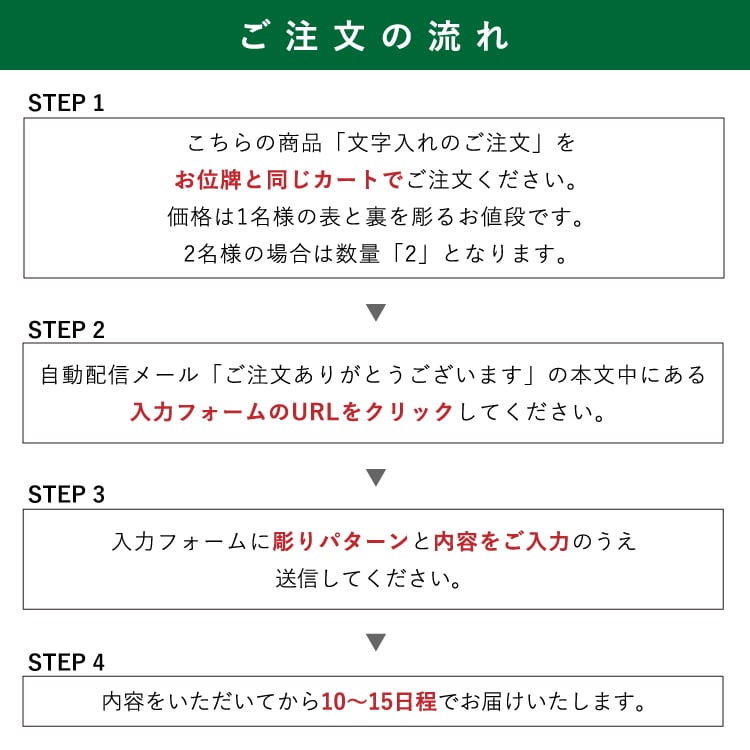 ※ご注意事項:文字の内容をいただいてから10〜15日程でお届けいたします。ご注文後、当店より詳細内容をメール致します