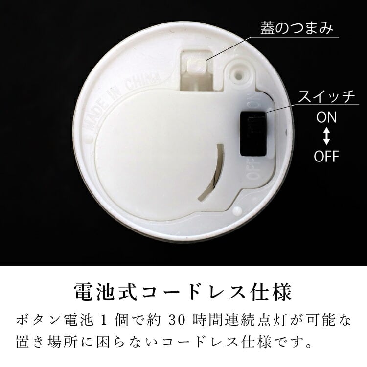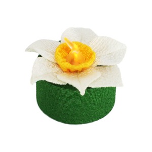 電池式LEDろうそくです。ちりめん細工のかわいい花が光ります。コードレスで小さいから飾りやすく、仏壇の灯りとしてお盆やお彼岸、季節の移ろいを演出します。