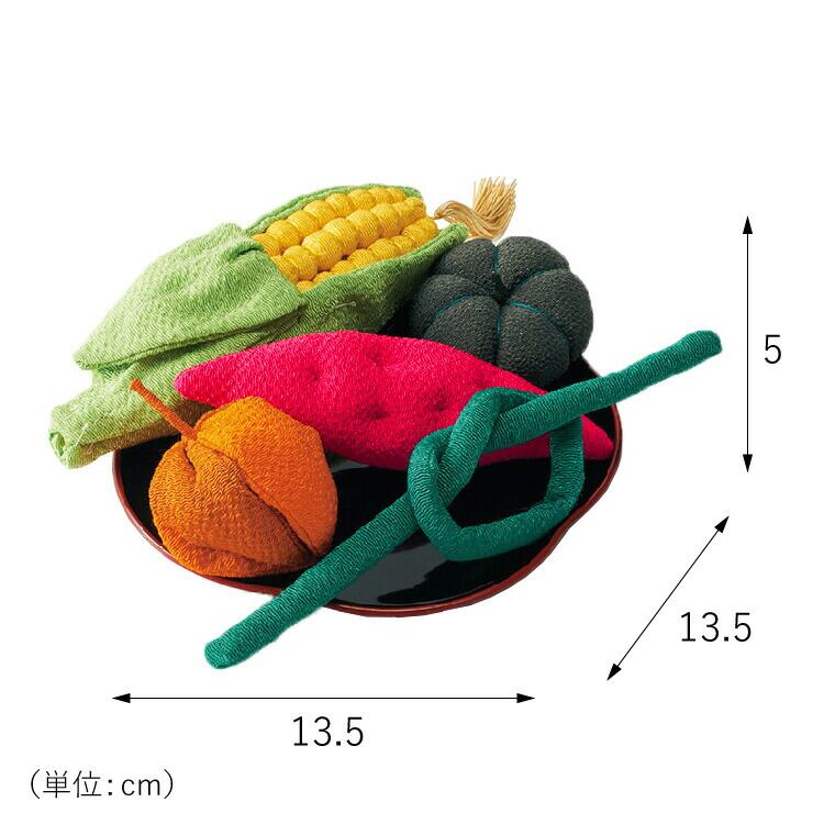 ちりめん細工のお盆飾り。ミニサイズでかわいい野菜セットです。初盆や新盆のお供え物として贈り物やギフトにおすすめ。イミテーションだから毎年飾れます。