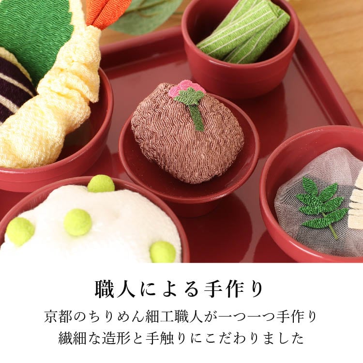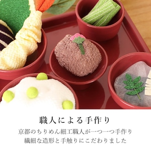 ちりめん細工のお供え物。かわいいミニサイズなので霊具膳に飾りやすく、春の味覚をご先祖さまにお供えできます。京都の職人が丁寧に手作りした安心の日本製です。