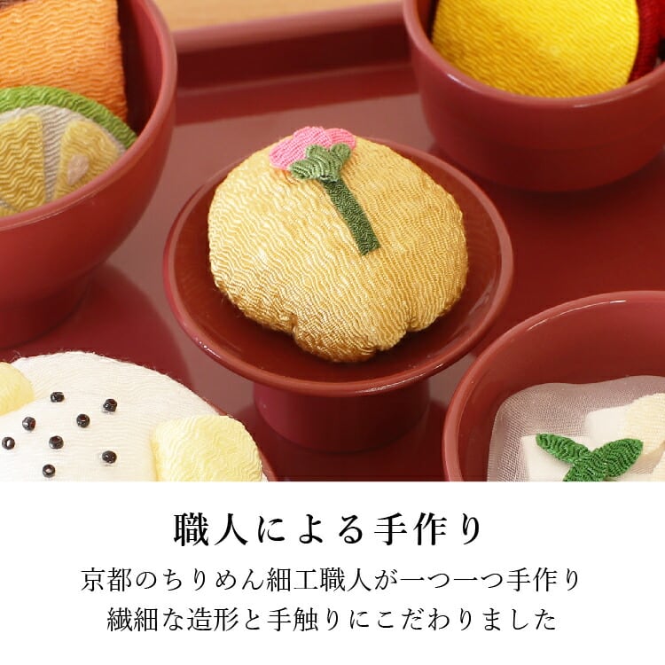 ちりめん細工のお供え物。かわいいミニサイズなので霊具膳に飾りやすく、秋の味覚をご先祖さまにお供えできます。京都の職人が丁寧に手作りした安心の日本製です。