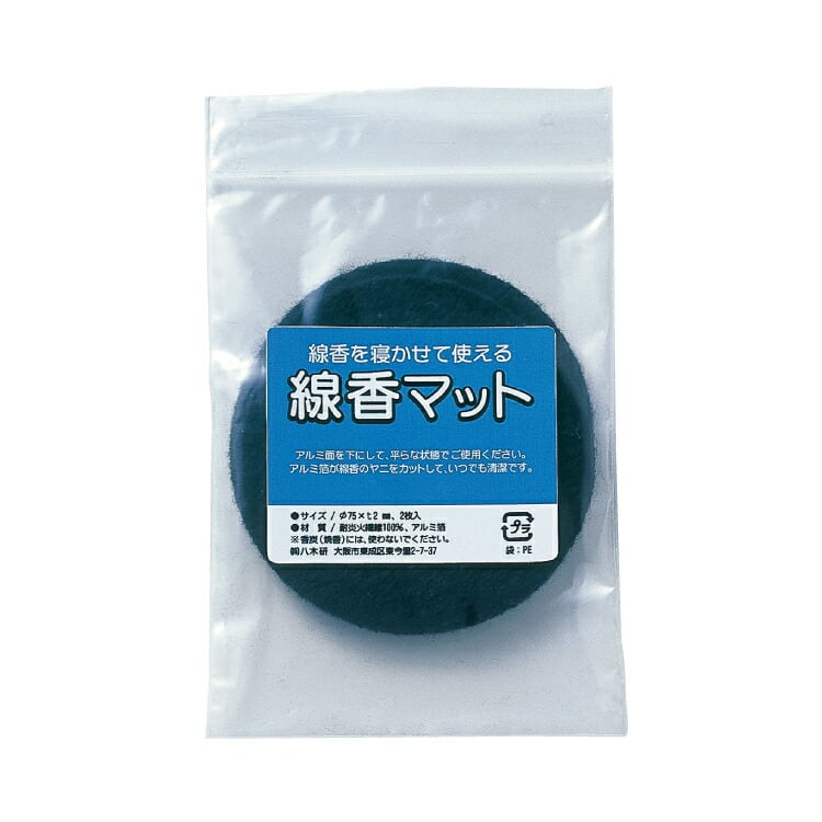 線香を横に寝かせて焚くためのマットです。対炎繊維のフェルトにアルミ箔を貼りました。熱と煙を遮断して香炉を保護します。繊維が固くなったらお取替えください。
