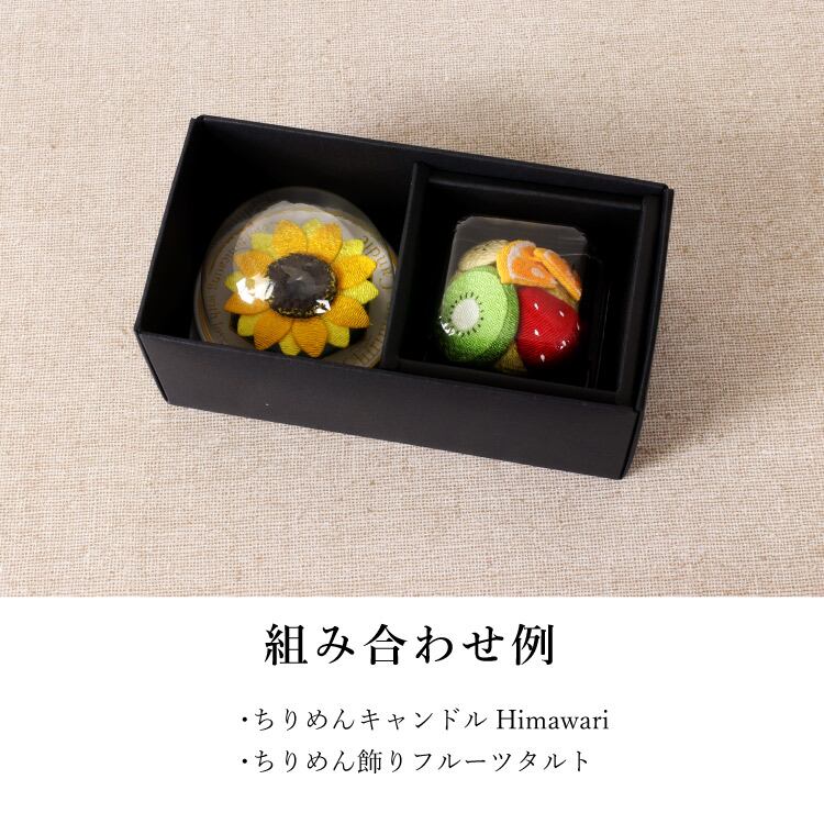 ※ご注意事項:お好きなちりめん飾り(洋菓子・和菓子・キャンドル)を2個別途購入してください。ギフトボックスにセットしてお届けいたします。