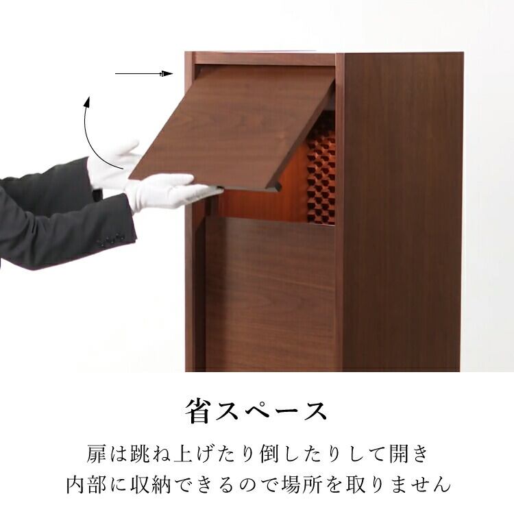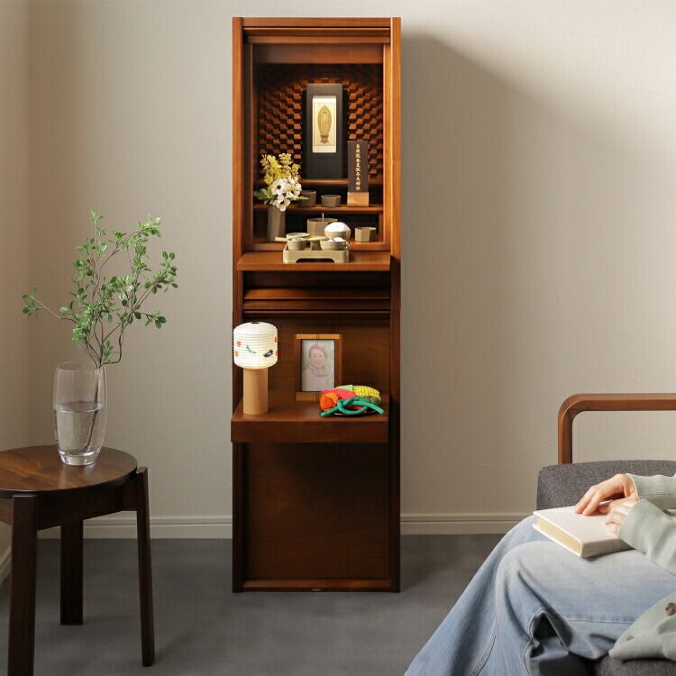 おしゃれなモダン仏壇です。日本製ならではの丁寧な作りで骨つぼを安置するスペースを作りました。コンパクトなのでリビングやマンションの置き場所を取りません。