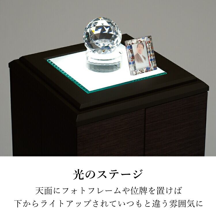 おしゃれなモダン仏壇です。シンプルなデザインなのでリビングやマンションに置きやすく、日本製の高い品質で仕上げました。ガラス製の一輪挿し(2ヶ)セット。