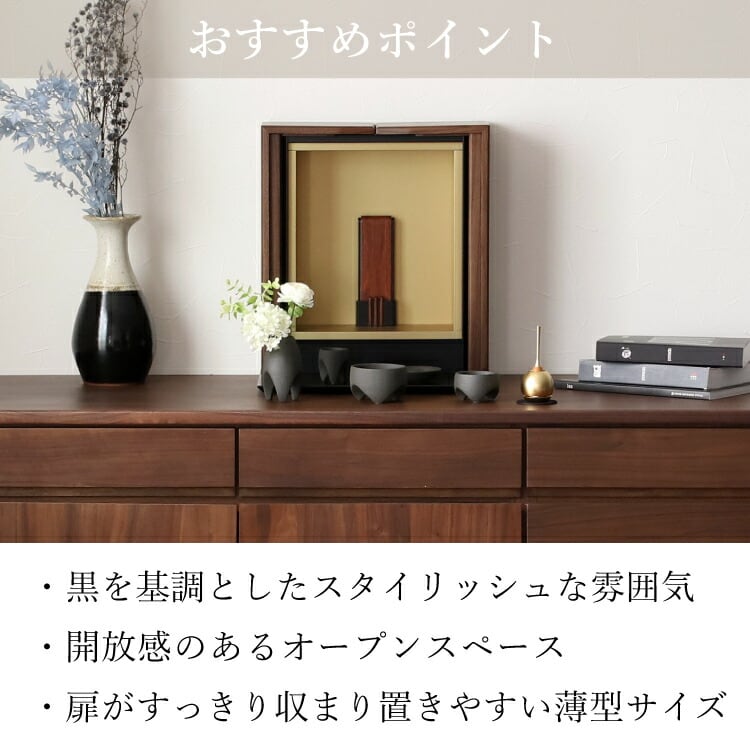 おしゃれなモダン仏壇です。リビングやマンションに置きやすいミニ仏壇。小さいながら日本製ならでは丁寧な作りでインテリア性が高く、手元供養にもおすすめです。
