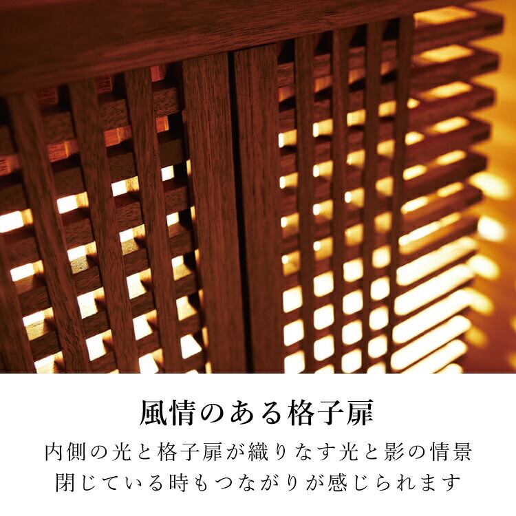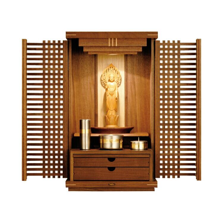 おしゃれなモダン仏壇です。コンパクトな上置き仏壇なのでリビングやマンションに置きやすく、日本製ならではの精緻な格子扉が内と外の空間を優しく繋げます。