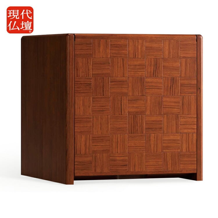 おしゃれなモダン仏壇です。リビングやマンションに置きやすいミニ仏壇。小さいながら日本製ならではの丁寧な作りで扉の両面にかわいい市松模様を仕上げました。