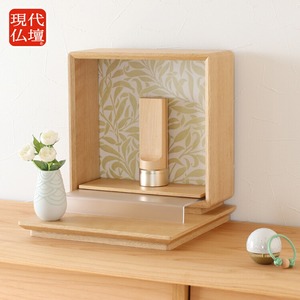 おしゃれなモダン仏壇です。リビングやマンションに置きやすく、インテリアに馴染む小さいオープンタイプ。京からかみに日本製ならではの風合いが感じられます。