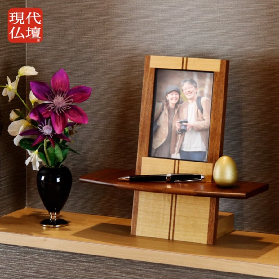 おしゃれなモダン仏壇です。小さいオープンタイプなのでリビングやマンションに置きやすく、大切な人を写真でシンプルにお祀りする手元供養におすすめです。