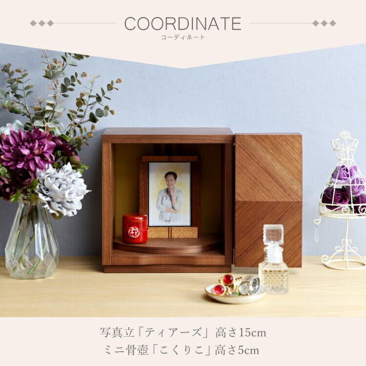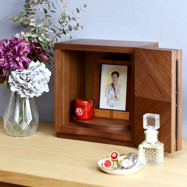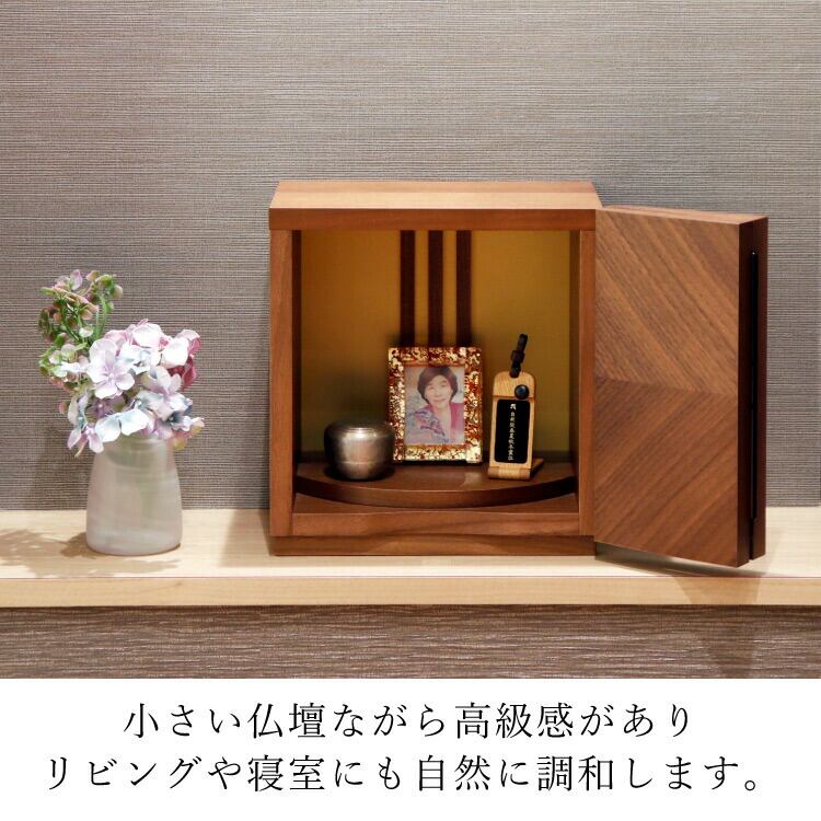 矢貼り模様がおしゃれなモダン仏壇です。リビングやマンションに置きやすいミニ仏壇。小さいながら日本製ならではの丁寧な仕上がりで、手元供養にもおすすめです。