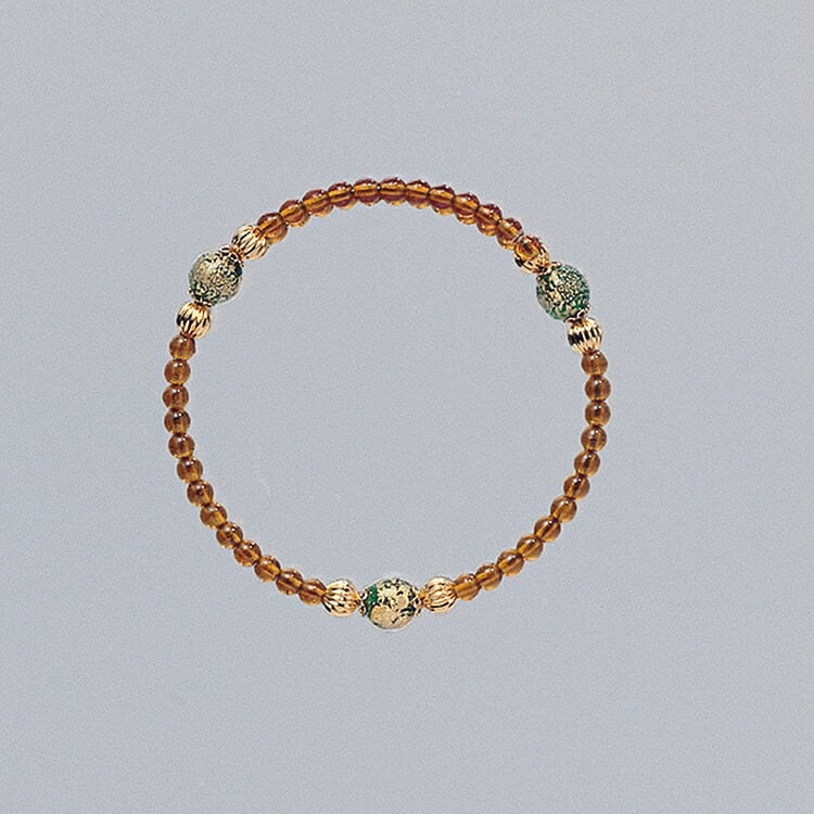 おしゃれな数珠ブレスレットです。イタリアの職人がハンドメイドでヴェネチアンガラスのとんぼ玉を手作りしました。フリーサイズなので贈り物にもおすすめです。