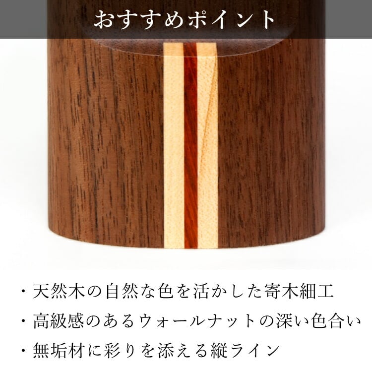 木製のモダン位牌です。おしゃれな寄せ木ラインがアクセント。コンパクトで夫婦位牌の名入れもできるので小さい仏壇や手元供養にもおすすめです。文字入れ代別途。
