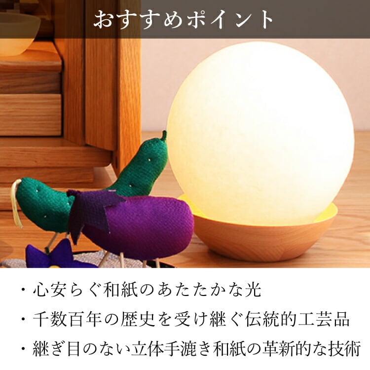 月をモチーフにしたかわいい盆提灯です。手漉き和紙の日本製提灯なので初盆や新盆の贈り物に最適。小さいからお盆の後もおしゃれでモダンな照明として活躍します。