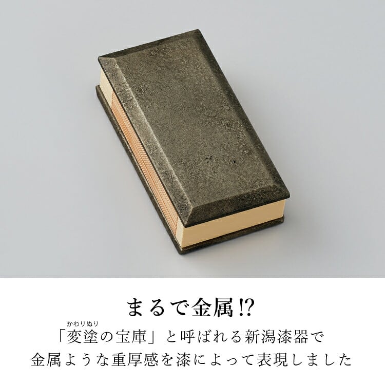 モダンな過去帳です。まるで金属のような質感でおしゃれな新潟漆器の変わり塗りを施しました。浄土真宗を始め全宗派対応。