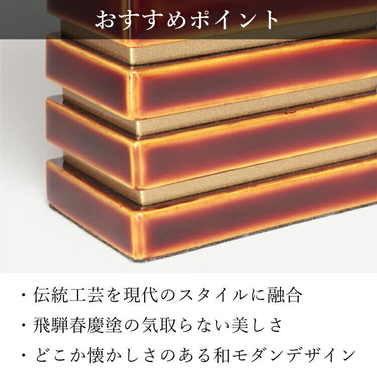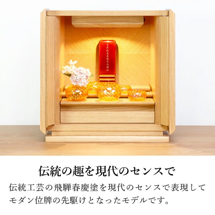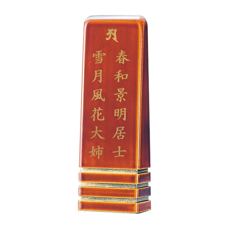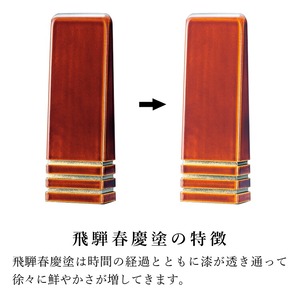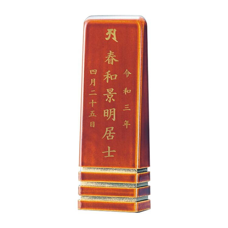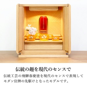 春慶塗のモダン位牌です。おしゃれな琥珀色は時間とともに冴えてきます。コンパクトで夫婦位牌の名入れもできるので小さい仏壇や手元供養にもおすすめです。