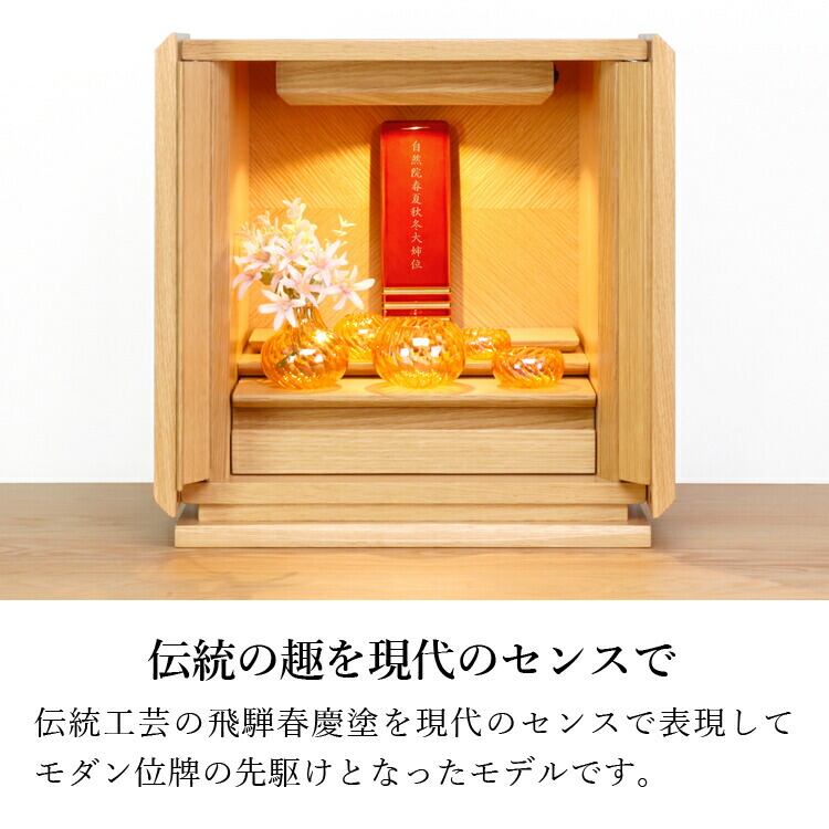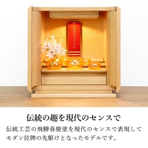 春慶塗のモダン位牌です。おしゃれな琥珀色は時間とともに冴えてきます。コンパクトで夫婦位牌の名入れもできるので小さい仏壇や手元供養にもおすすめです。