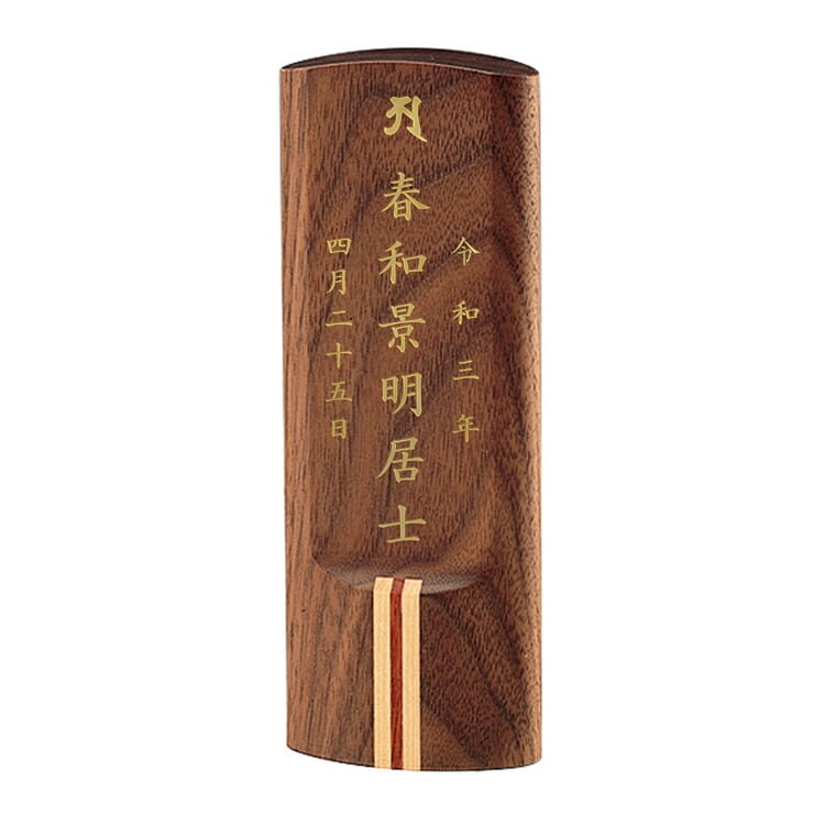 木製のモダン位牌です。おしゃれな寄せ木ラインがアクセント。コンパクトで夫婦位牌の名入れもできるので小さい仏壇や手元供養にもおすすめです。文字入れ代別途。