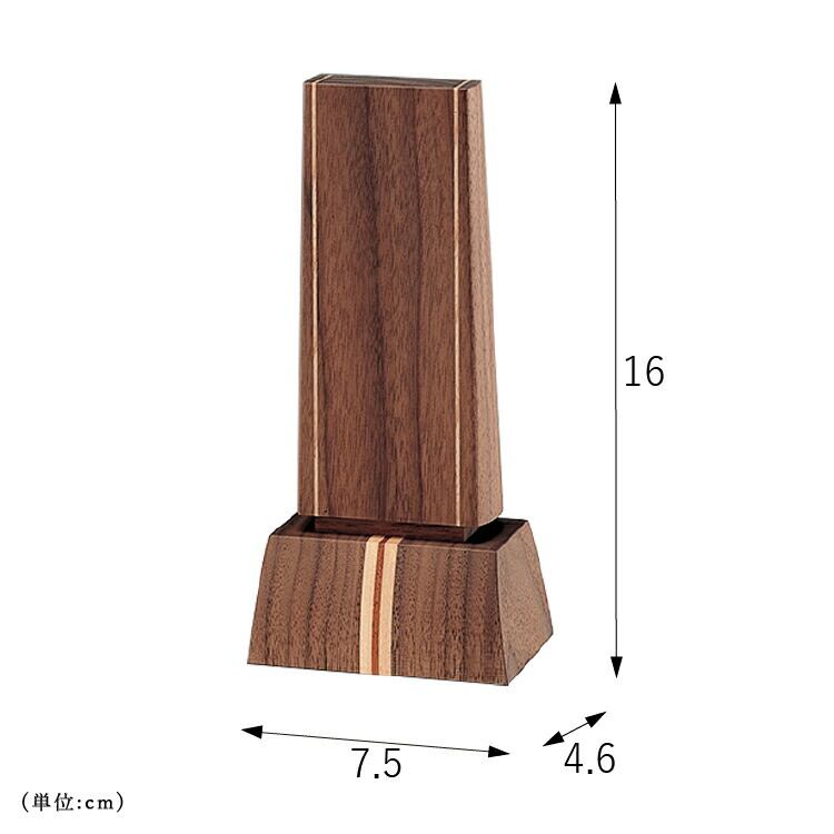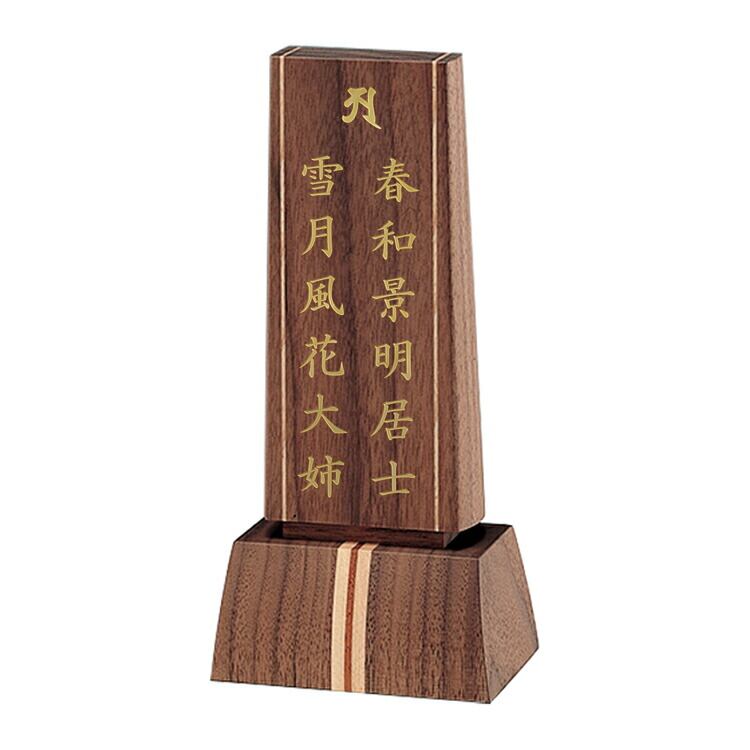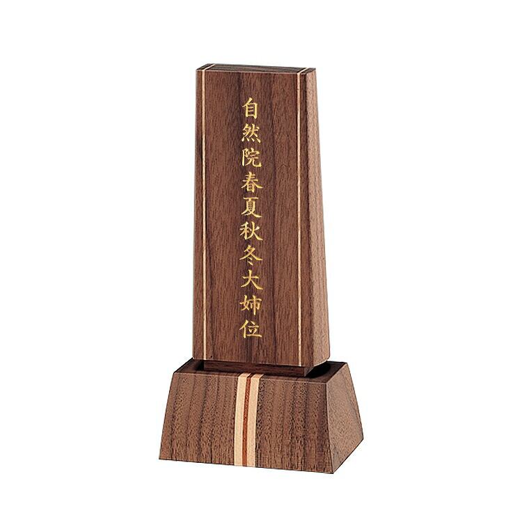 木製のモダン位牌です。おしゃれな寄せ木ラインがアクセント。コンパクトで夫婦位牌の名入れもできるので小さい仏壇や手元供養にもおすすめです。文字入れ代別途。