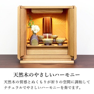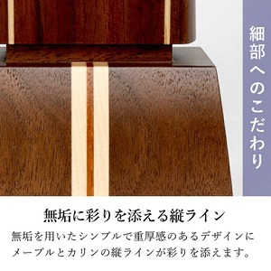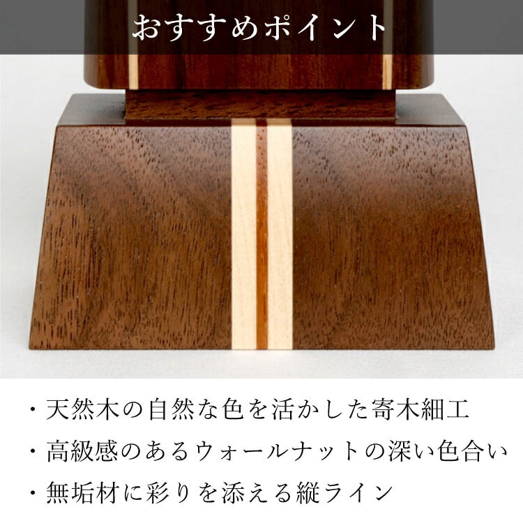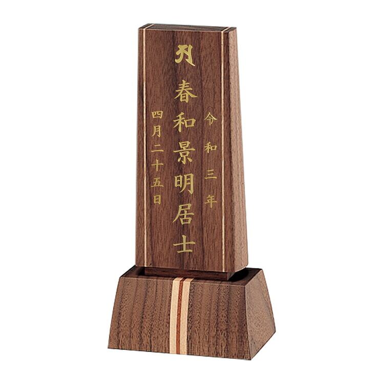 木製のモダン位牌です。おしゃれな寄せ木ラインがアクセント。コンパクトで夫婦位牌の名入れもできるので小さい仏壇や手元供養にもおすすめです。文字入れ代別途。