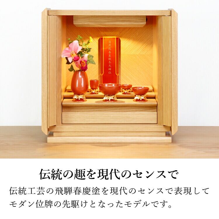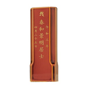 春慶塗のモダン位牌です。おしゃれな琥珀色は時間とともに冴えてきます。コンパクトで夫婦位牌の名入れもできるので小さい仏壇や手元供養にもおすすめです。