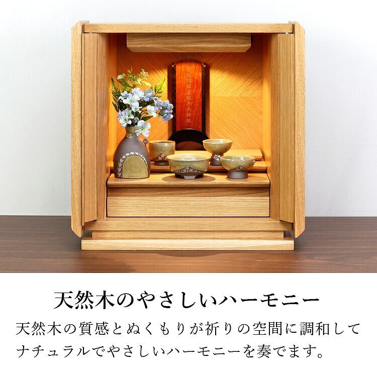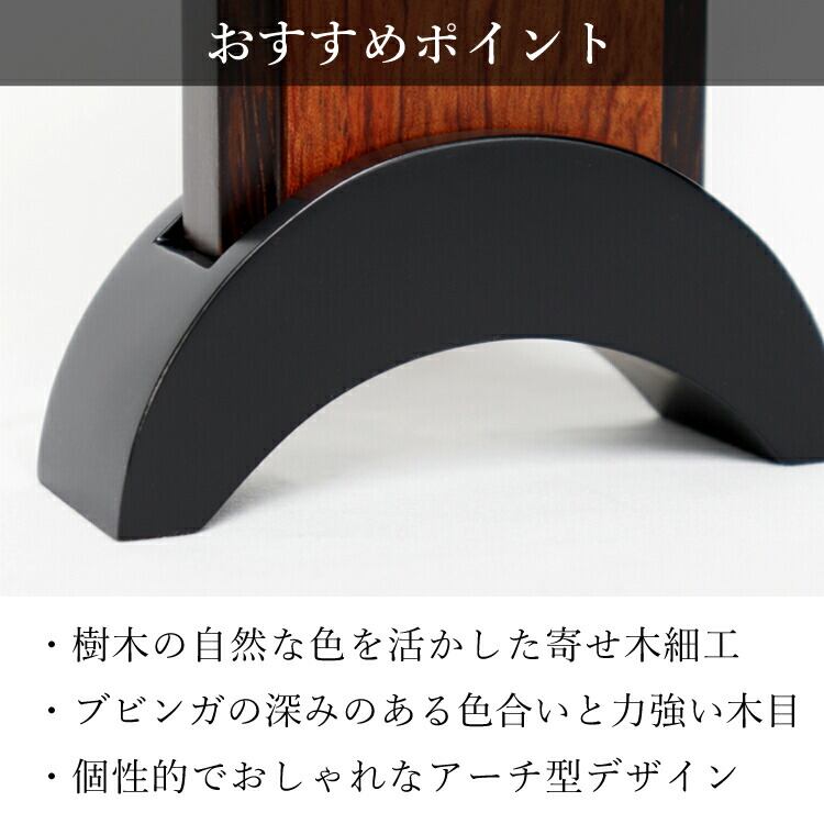 おしゃれな寄せ木のモダン位牌です。自然の色合いを活かしてデザインしました。コンパクトで夫婦位牌の名入れもできるので小さい仏壇や手元供養にもおすすめです。