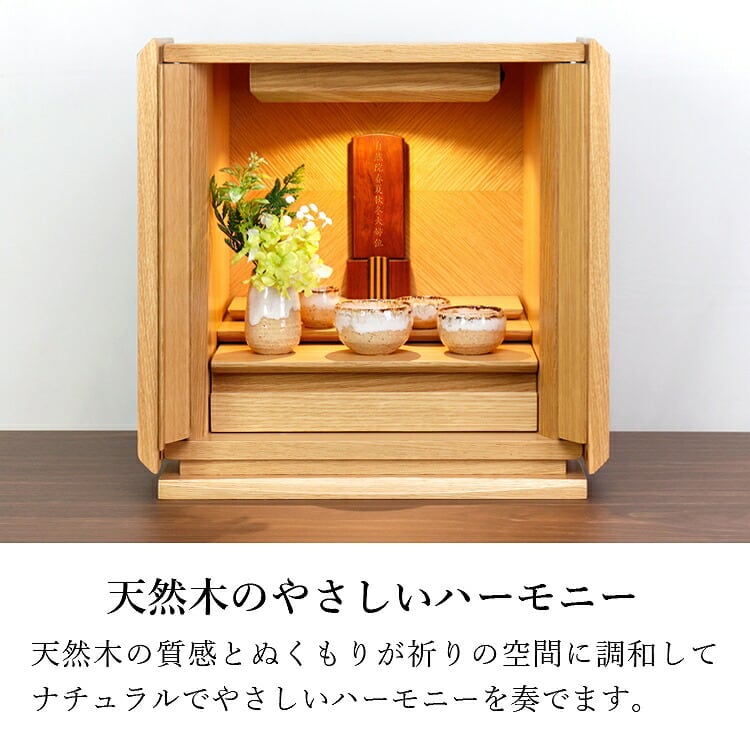 おしゃれな寄せ木のモダン位牌です。自然の色合いを活かしてデザインしました。コンパクトで夫婦位牌の名入れもできるので小さい仏壇や手元供養にもおすすめです。