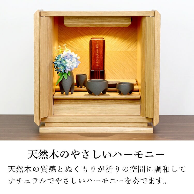 おしゃれな寄せ木のモダン位牌です。自然の色合いを活かしてデザインしました。コンパクトで夫婦位牌の名入れもできるので小さい仏壇や手元供養にもおすすめです。