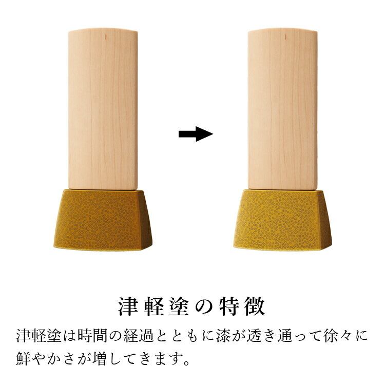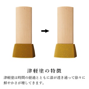 モダンな津軽塗位牌です。メープルの札とかわいい七々子塗の台座がおしゃれ。コンパクトで夫婦位牌の名入れもできるので小さい仏壇や手元供養にもおすすめです。