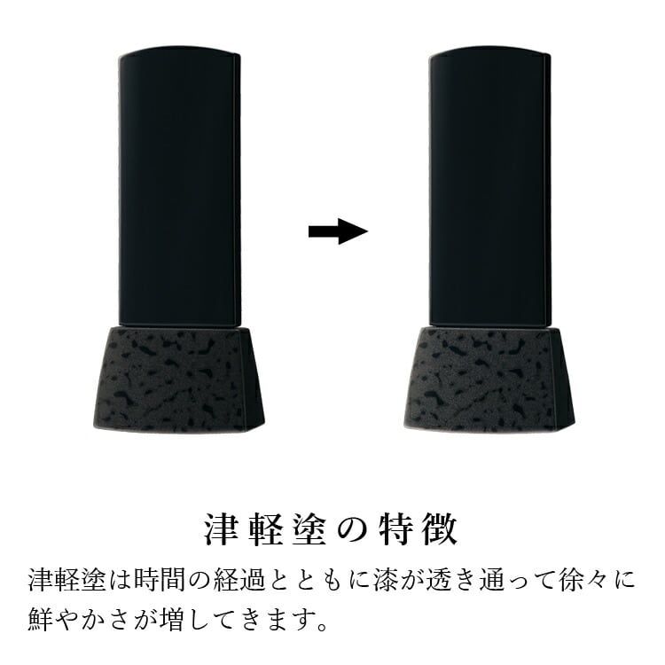 モダンな津軽塗位牌です。艶消しの黒地に光沢のある漆を研ぎ出すおしゃれな紋紗塗が高級感を演出します。夫婦位牌の名入れもできるので手元供養にもおすすめです。