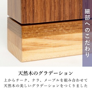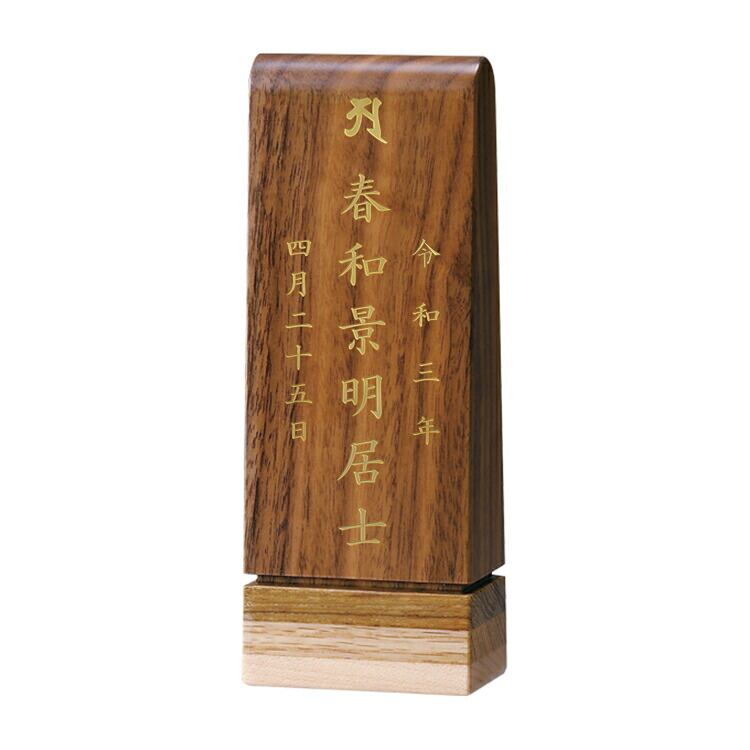 おしゃれな寄せ木のモダン位牌です。自然の色合いを活かしてデザインしました。コンパクトで夫婦位牌の名入れもできるので小さい仏壇や手元供養にもおすすめです。