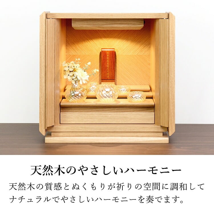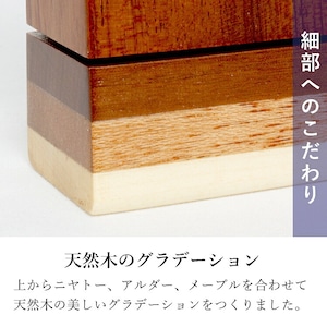 おしゃれな寄せ木のモダン位牌です。自然の色合いを活かしてデザインしました。コンパクトで夫婦位牌の名入れもできるので小さい仏壇や手元供養にもおすすめです。