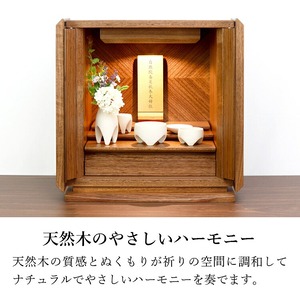 おしゃれな寄せ木のモダン位牌です。自然の色合いを活かしてデザインしました。コンパクトで夫婦位牌の名入れもできるので小さい仏壇や手元供養にもおすすめです。