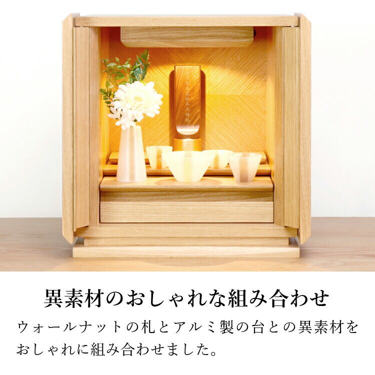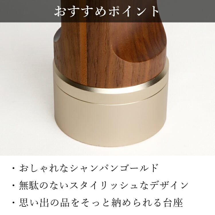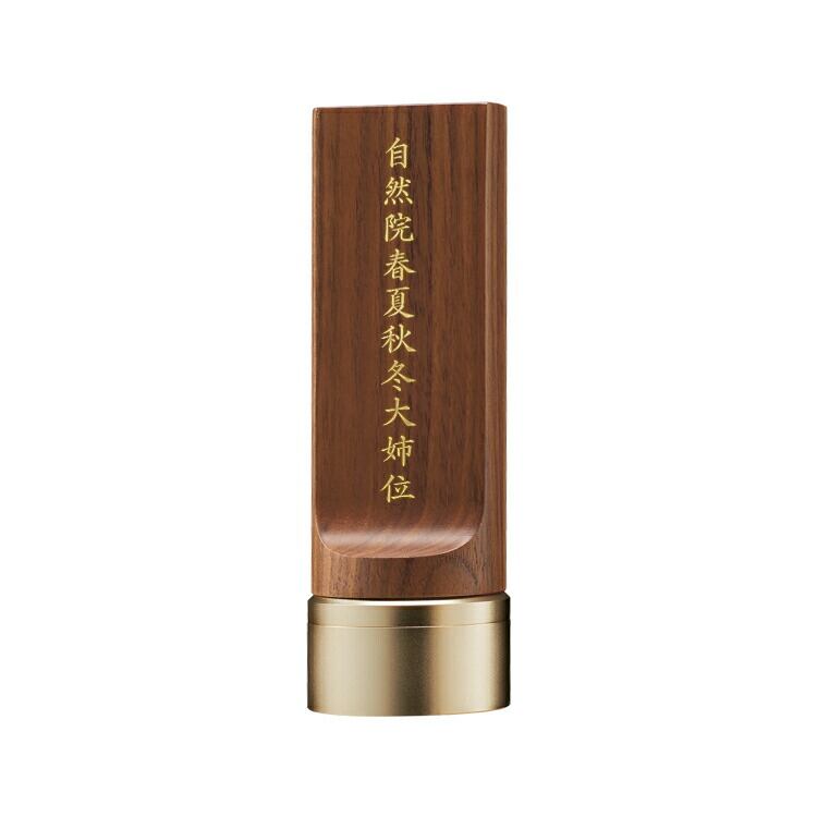 おしゃれでモダン位牌です。シャンパンゴールドの台座内部に小さな品を納められます。夫婦位牌の名入れもできるのでミニ仏壇やコンパクトな手元供養にも最適です。