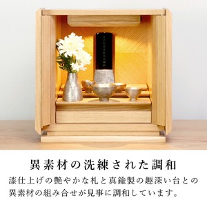 高岡の真鍮鋳物を用いたモダン位牌です。おしゃれな台座は自然に風合いが増してきます。夫婦位牌の名入れもできるので小さい仏壇やコンパクトな手元供養にも最適。