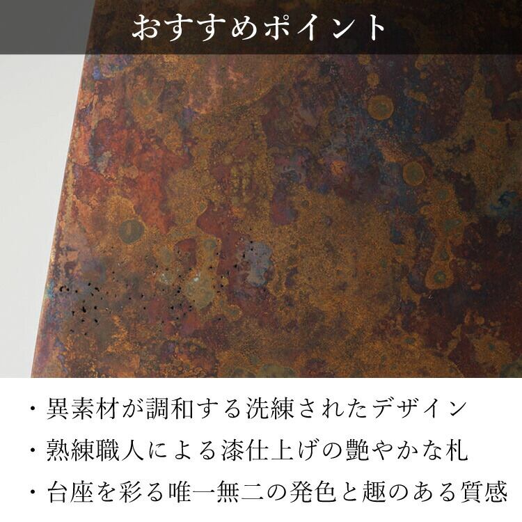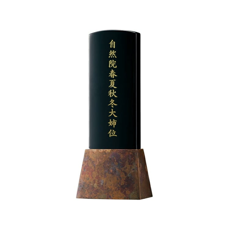 高岡の真鍮鋳物を用いたモダン位牌です。おしゃれな台座は自然に風合いが増してきます。夫婦位牌の名入れもできるので小さい仏壇やコンパクトな手元供養にも最適。