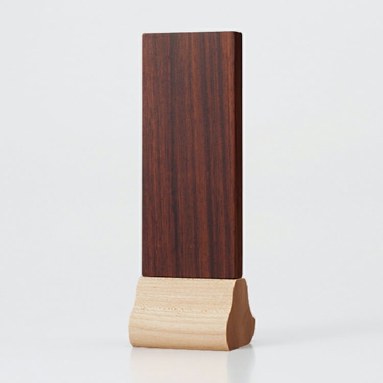 木製のモダン位牌です。横から見ると雲の形になる台座がおしゃれ。コンパクトなので小さいミニ仏壇に合わせやすく、戒名のない無宗教の手元供養にもおすすめです。