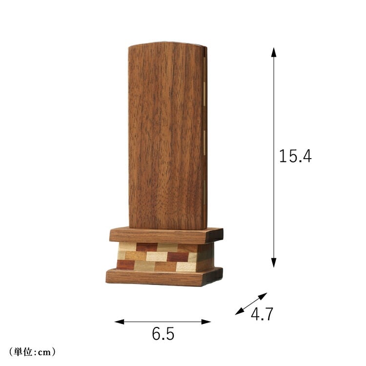 おしゃれな寄せ木のモダン位牌です。自然の色合いを活かしてデザインしました。コンパクトで夫婦位牌の名入れもできるので小さい仏壇や手元供養にもおすすめです。