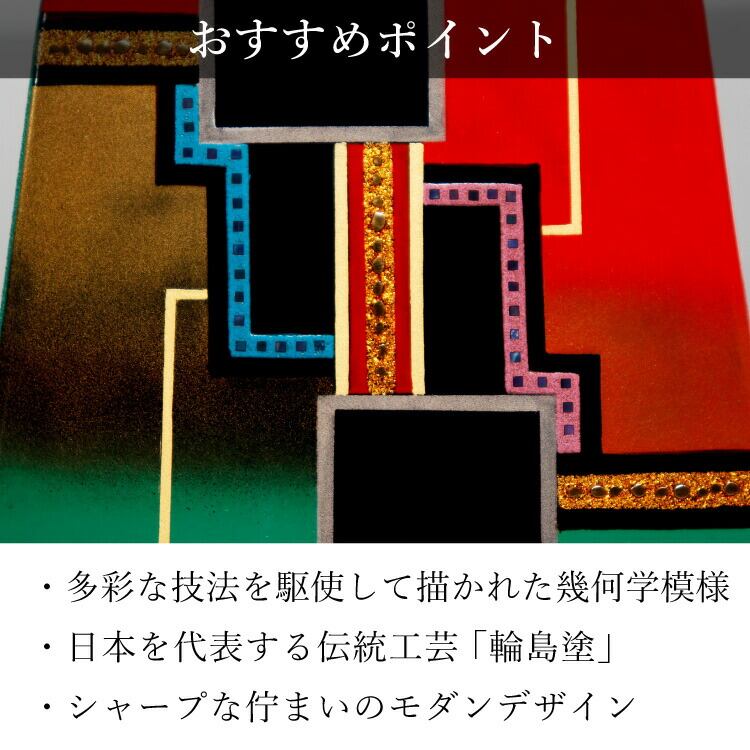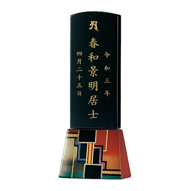 輪島塗のおしゃれなモダン位牌です。鮮やかな色彩と大胆なデザインの蒔絵は唯一無二の華やかな高級感を演出します。特別感のある手元供養にもおすすめです。